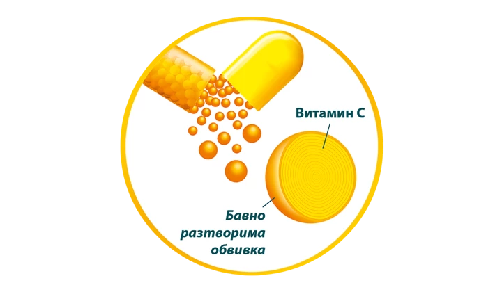 Витамин С се освобождава към тялото от микроперлите пласт по пласт, което осигурява продължително подаване на Витамин С часове наред през денонощието.